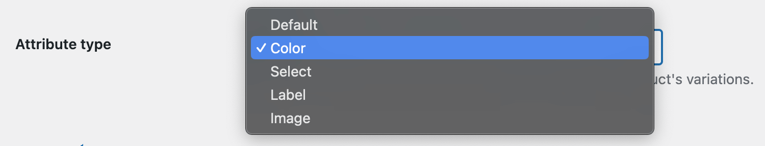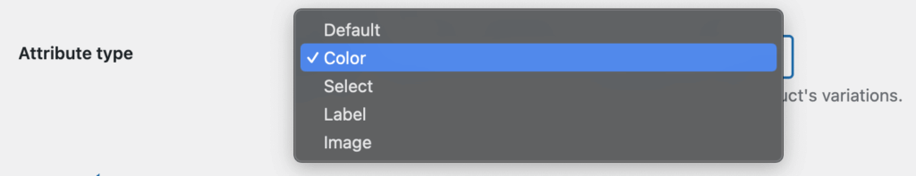 Under Attribut typ väljer du vilket typ av element som besökaren ska använda för att välja en produktvariant. I vårt exempel väljer vi en färgknapp.