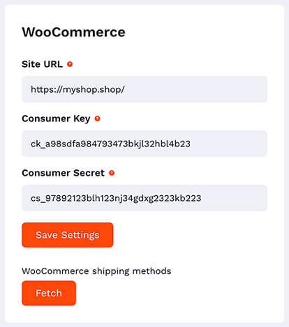 - Lägg in din butiks Consumer Key och Consumer Secret