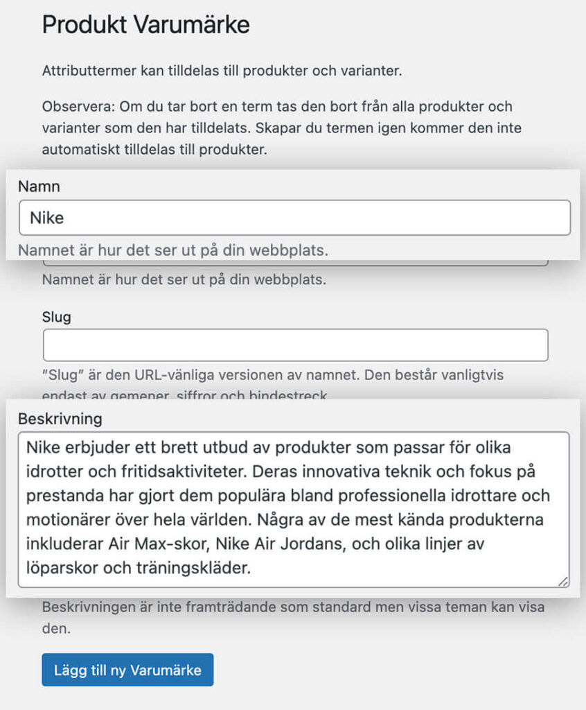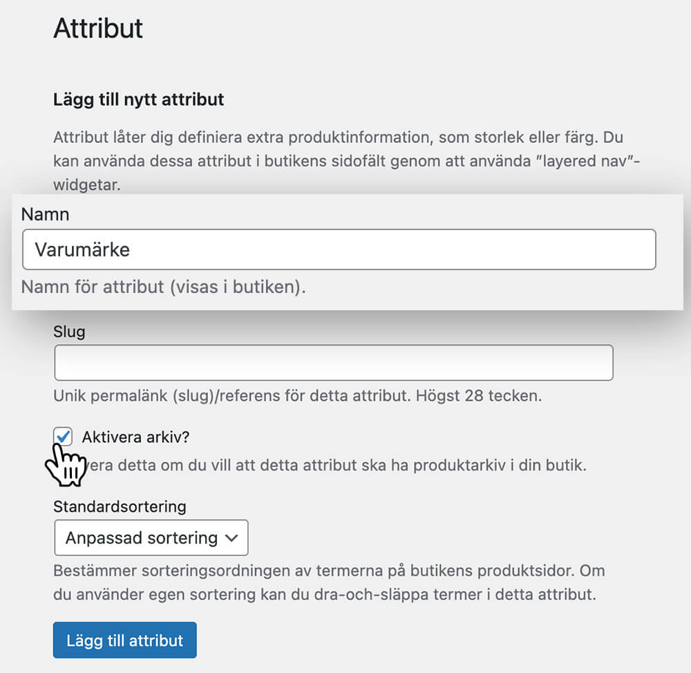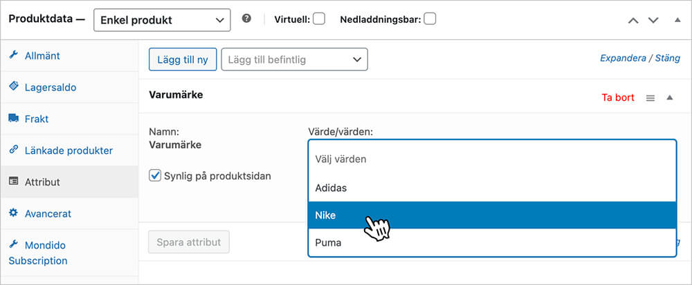 WooCommerce Attribut som är ett flexibelt sätt för att beskriva dina produkters egenskaper och låta dina besökare filtrera på egenskaperna på ett smidigt vis. Attribut är också en perfekt lösning för att lägga in varumärken på era produkter.