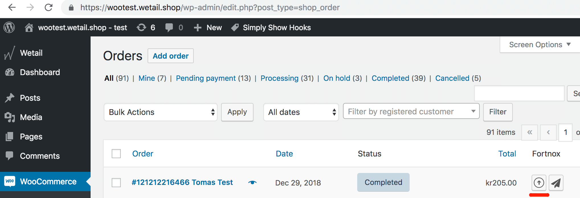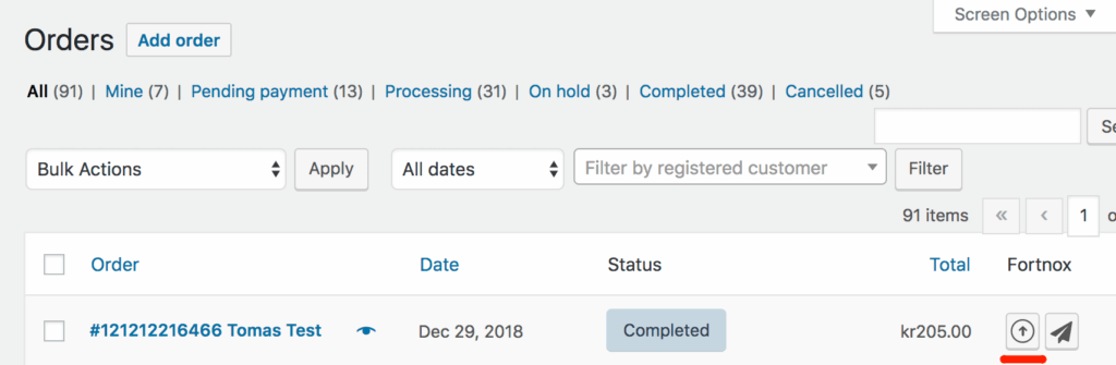- Navigera till WooCommerce->Orders