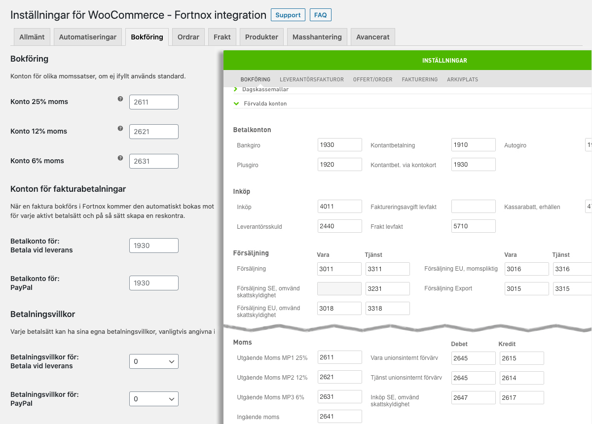 - Gå till Bokföring i Fortnoxpluggens inställningspanel