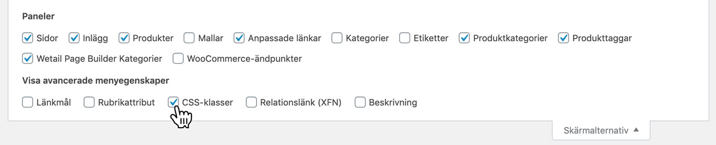 2. Aktivera klasser på dina menylänkar i admin