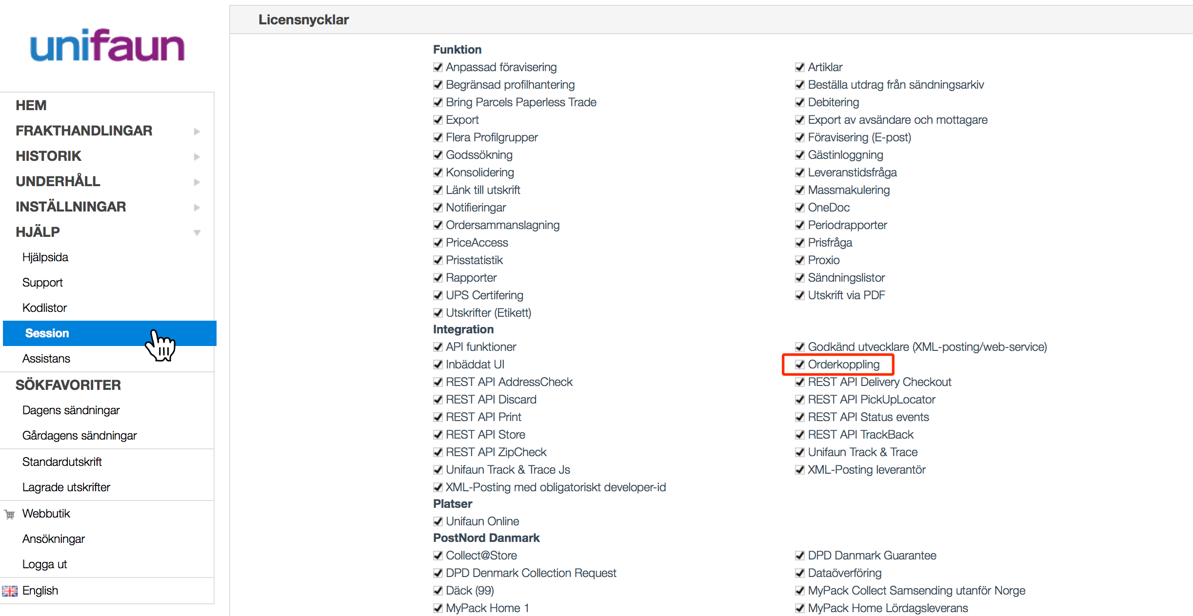 Om du saknar orderkoppling kan du kontakta vår support så hjälper de dig installera och beställa den från Unifaun till ett reducerat pris.
