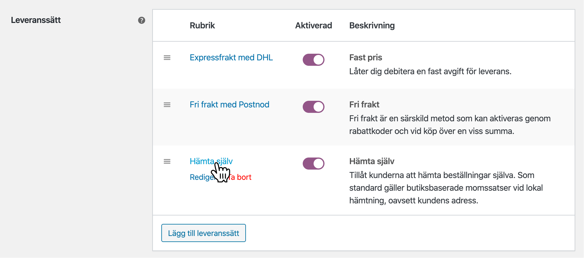 Lägg till leveranssätt