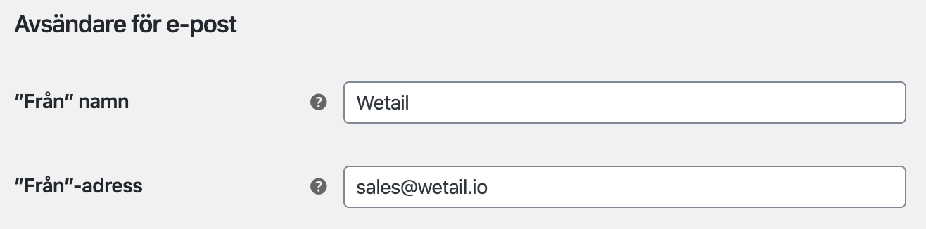 Ställ in avsändare, här skriver du lämpligen in företagsnamn och vilken e-postadress mailen ska skickas ifrån.