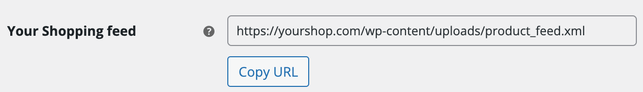 - Ange URL:en för din WooCommerce XML-feed. Om din feed ligger på en server kan du skapa en offentlig URL (exempelvis via din domän, t.ex.