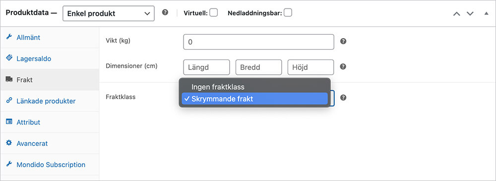 2. Lägg till fraktklasser på produkter