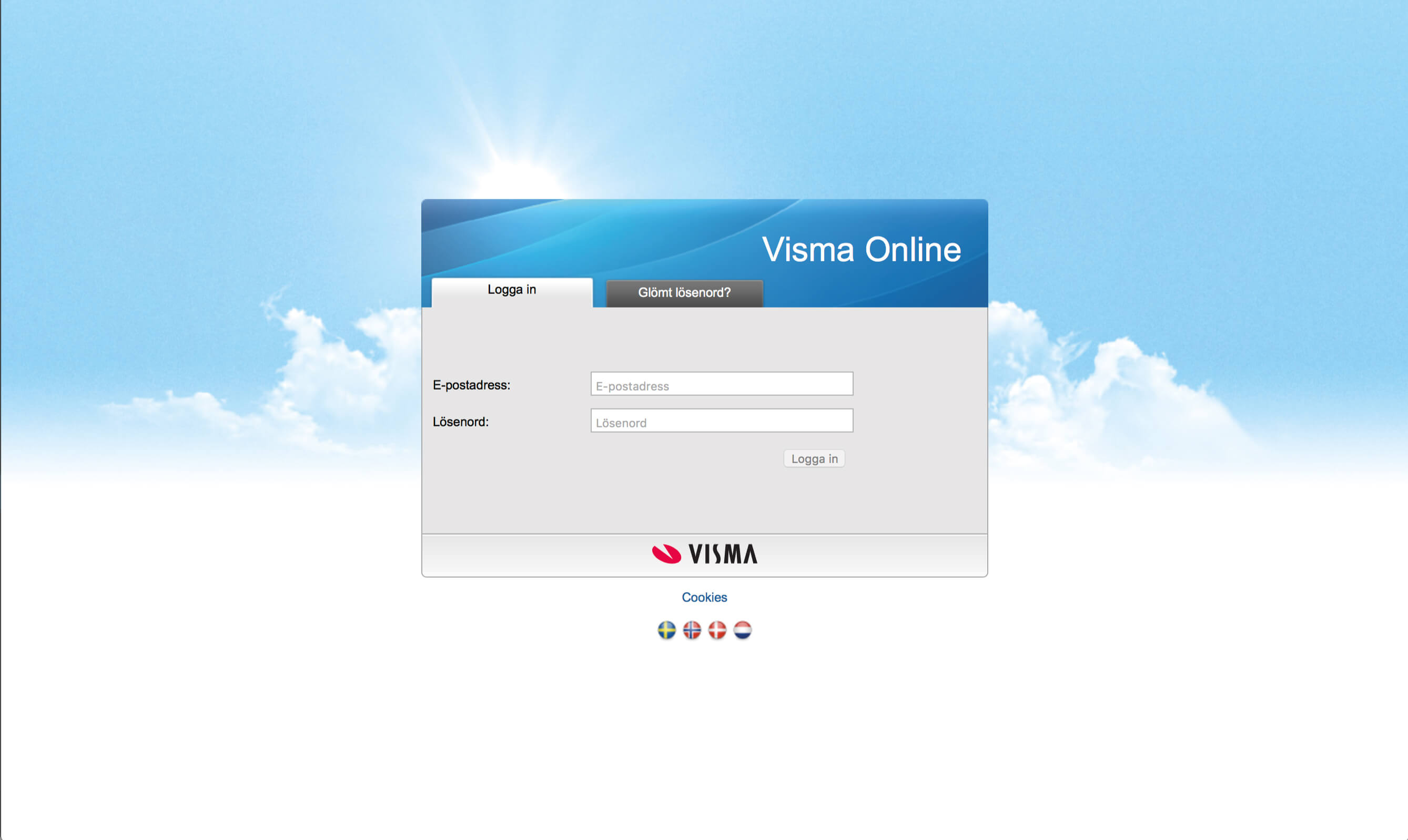6. Nu kommer du behöva logga in på Visma Online. Här anger du dina inloggningsuppgifter till Visma Online.