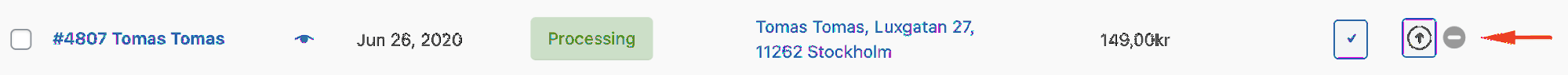 Det går att se status på order-synkroniseringen till Sitoo i WooCommerce admin.Navigera till WooCommerce->Orders, titta i kolumnen Sitoo och säkerställ det finns en grön bock. Grön bock betyder att ordern har synkroniserats till Sitoo.